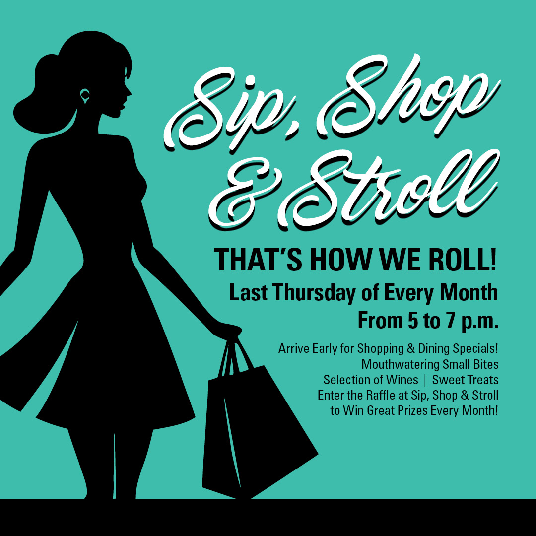 Sip, Shop & Stroll Thursday, April 30 from 5 to 7 p.m.